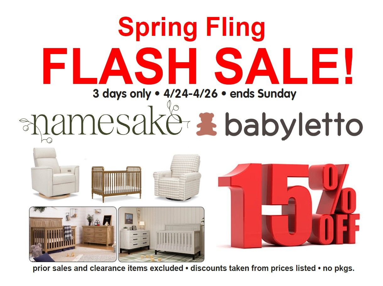 We offer a full range of products for babies and children at every stage of growth. Our inventory includes cribs, strollers, car seats, feeding supplies, baby monitors, toys, and more. We also have an outlet section with discounted scratch and dent items for budget-conscious parents.